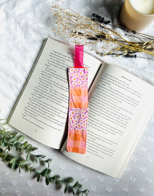 Scrappy Bookmark - Pink and Orange Gingham and Florals