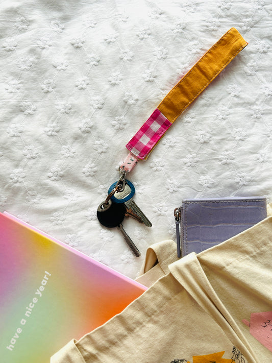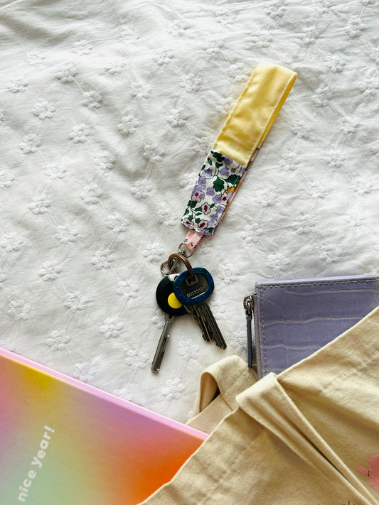 Scrappy Keychain - Yellow and Lilac Gingham and Florals