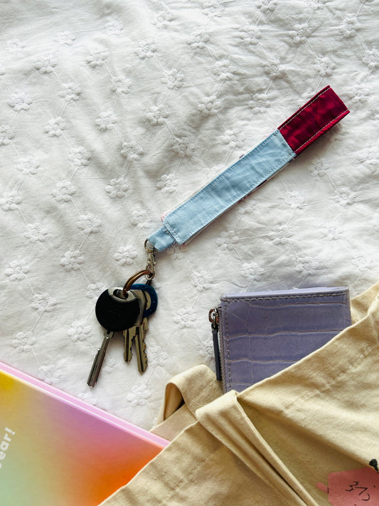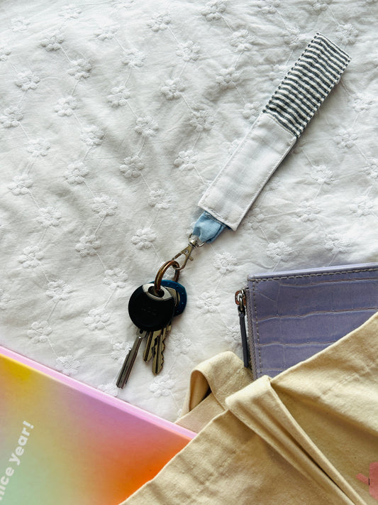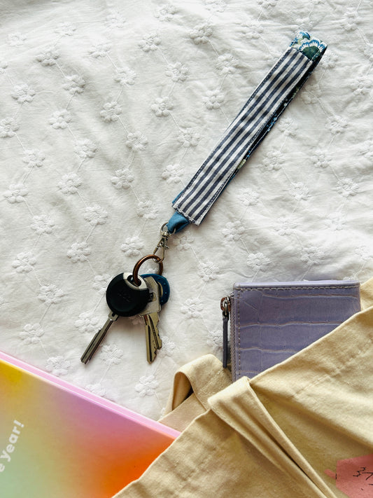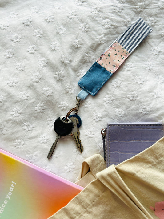 Scrappy Keychain - Lilac Pink Blue Florals and Stripes
