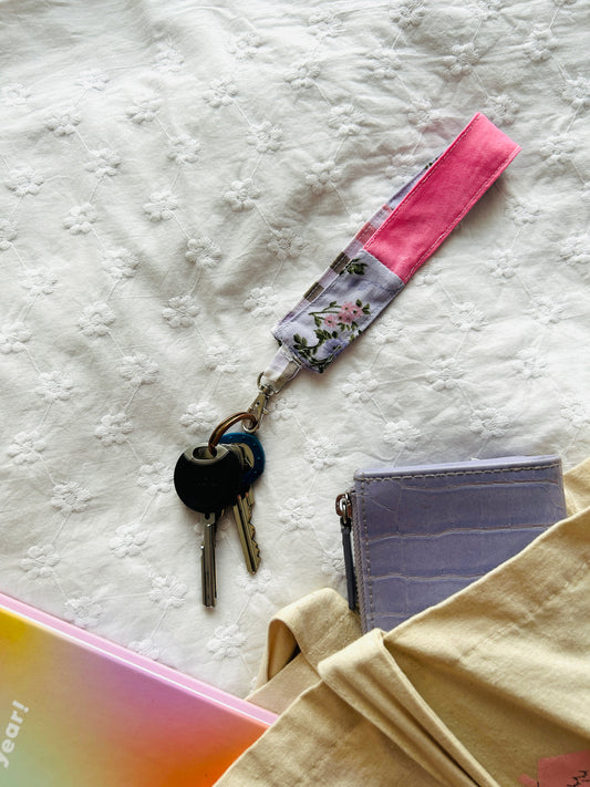 Scrappy Keychain - Pink Lilac Florals and Gingham